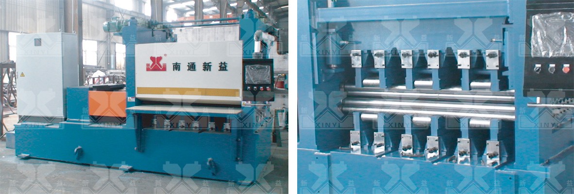 本機(jī)床是四重式校平機(jī)的升級(jí)機(jī)型。在上、下排校平工作輥與支撐輥(輪)之間各加裝進(jìn)一排中間輥,構(gòu)成 上下各三重,共六重的組輥結(jié)構(gòu)。通過(guò)中間輥的過(guò)渡,支撐輥{輪)的支撐力不直接作用于工作輥,避免了四 重式校平機(jī)工作時(shí),在敏感材料表面留下支撐輥{輪)壓痕的現(xiàn)象,最大程度地保護(hù)加工材料的表面狀態(tài)。 主要用于校平鋁板、不銹鋼板、銅板、有色金屬板、不同金屬?gòu)?fù)合板,涂、鍍、磨工藝金屬板等對(duì)板表面要求 較高的板材。校平輥受力分布均勻,結(jié)構(gòu)剛性好,工作輥撓曲變形小,校平精度高。 可另外選用自動(dòng)壓下數(shù)控系統(tǒng)及典型工件參數(shù)存儲(chǔ)專家系統(tǒng)。 | |